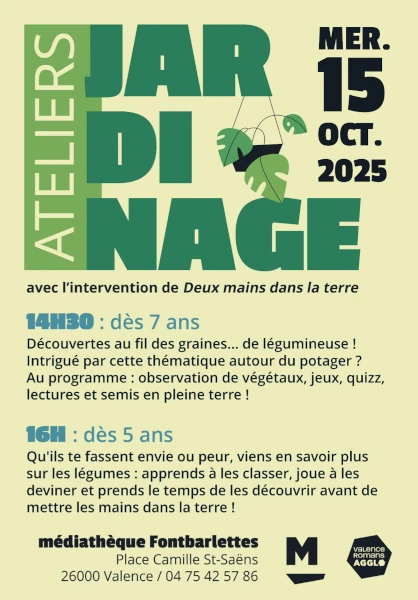 inscriptions auprès de la Médiathèque de Fontbarlettes (coordonnées ci-dessus)